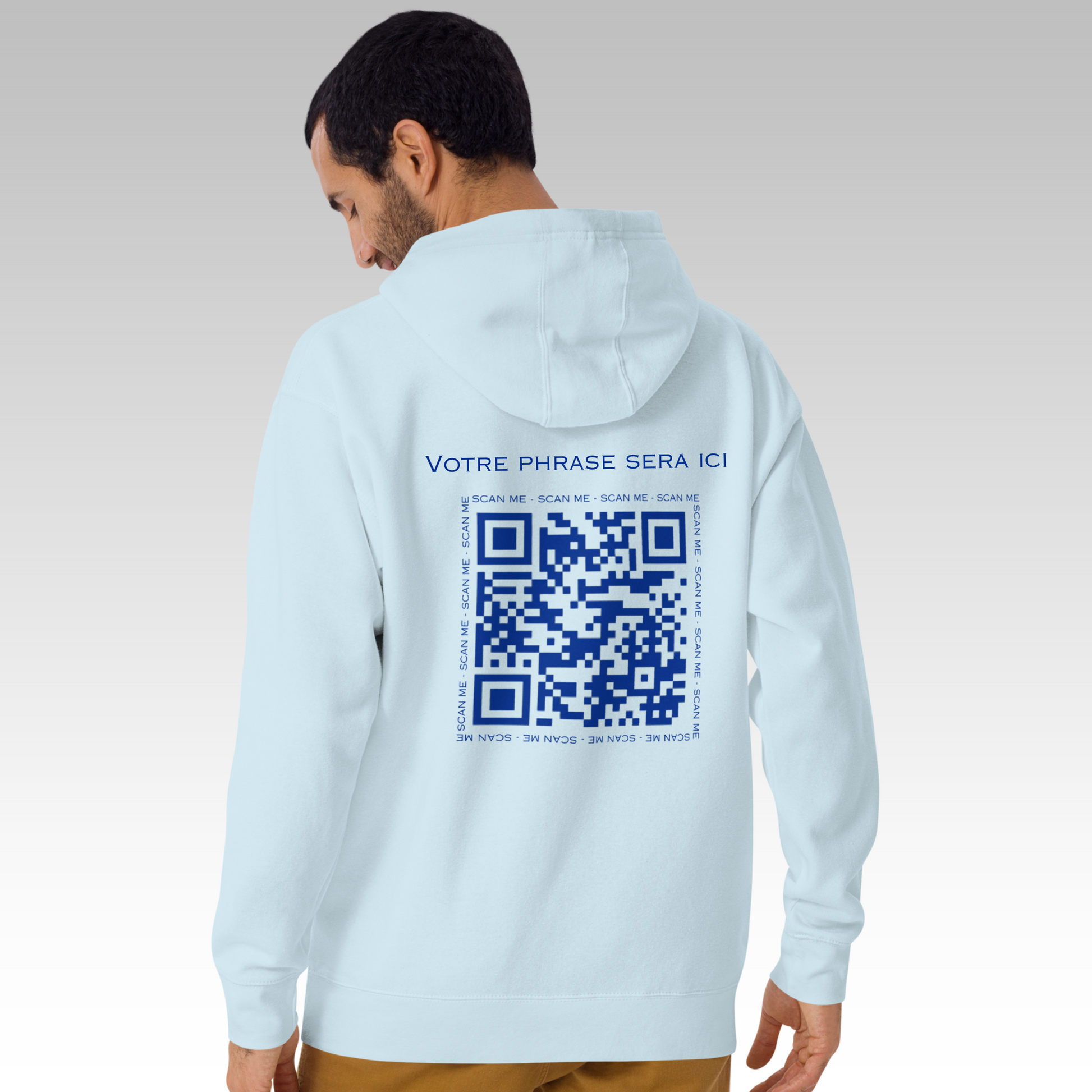Ajoutez la phrase de votre choix au-dessus du QR code grâce au champ prévu à cet effet. Si vous ne souhaitez pas de texte, laissez simplement ce champ vide.