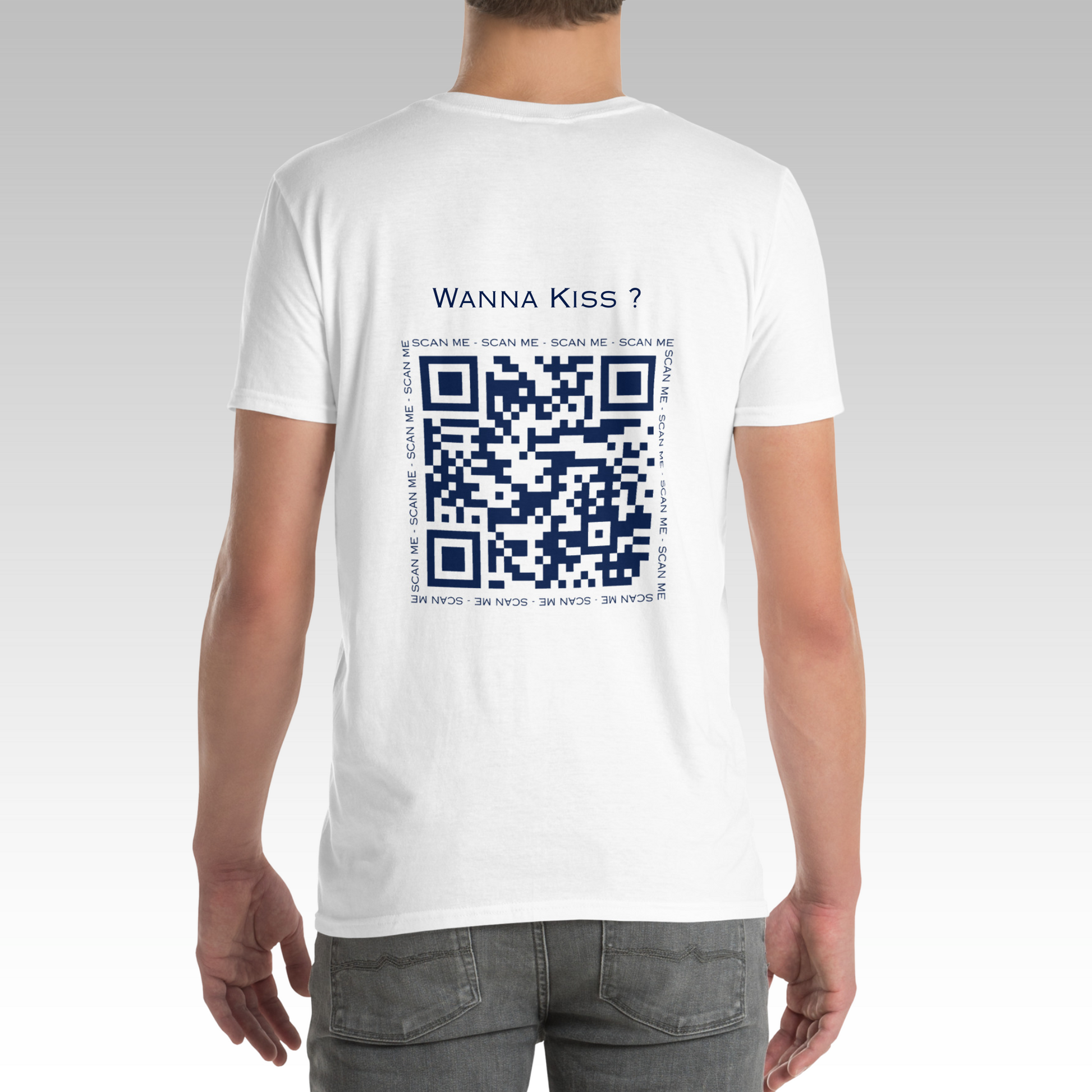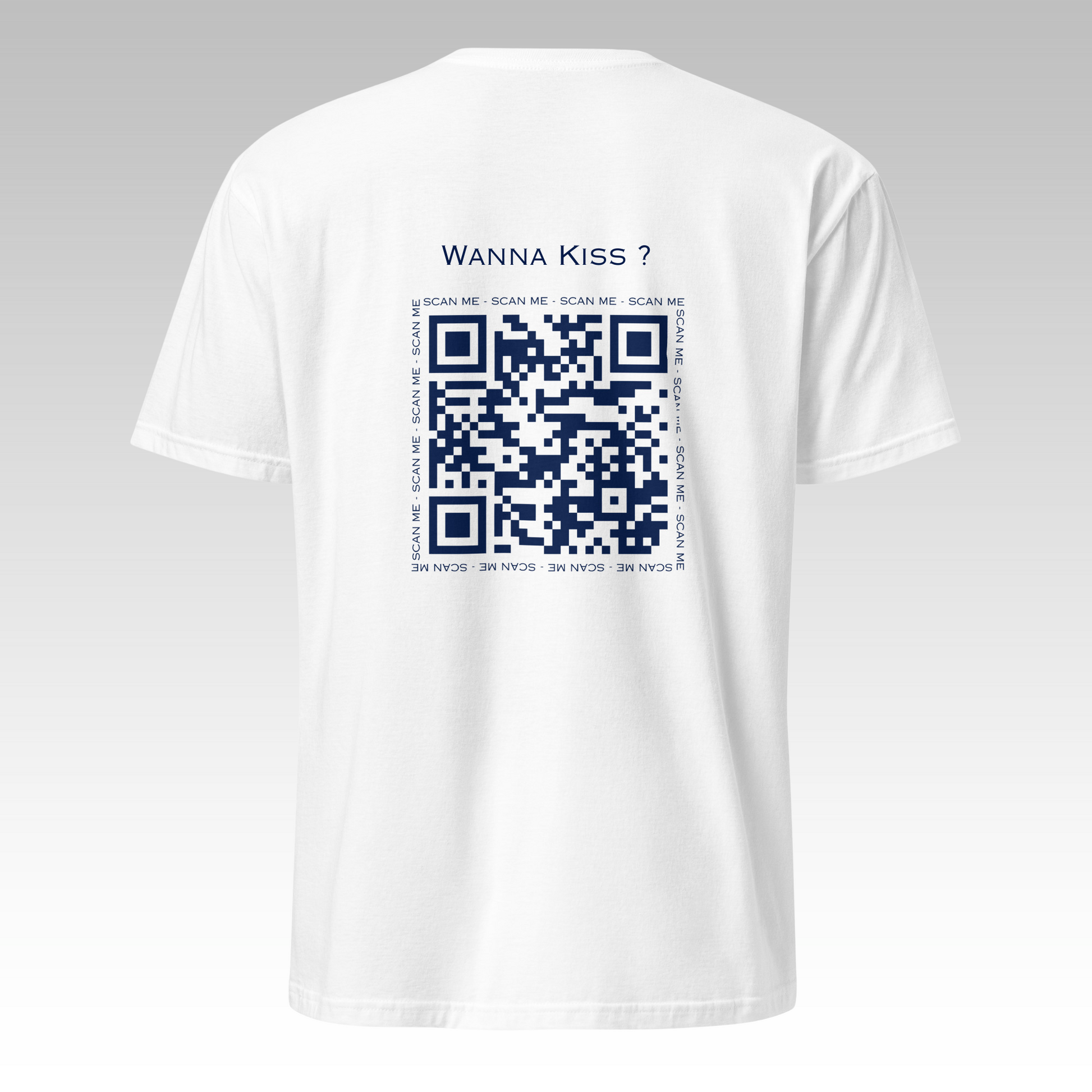 T-Shirt "Wanna Kiss ?" Blanc/Bleu